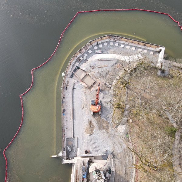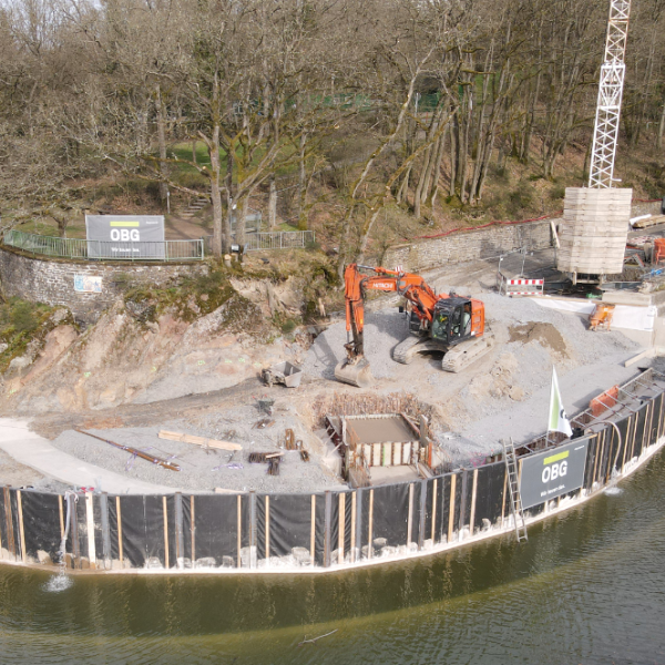 Durch seine Lage inmitten des Naturparks Öewersauer ist der Obersauer-Stausee eins der schönsten Wandergebiete Luxemburgs und ein beliebtes Ausflugsziel für Touristen. Aktuell ist auch ein OBG-Team aus Luxemburg vor Ort. Allerdings nicht zur Entspannung - in Insenborn bauen wir für die Straßenbauverwaltung (Administration des Ponts et Chaussées) eine neue Bootsanlegestelle.